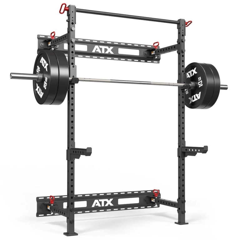 The ATX® Fold Back Rack FBR-500 - height 198 cm is the ideal solution for anyone who has limited space but does not want to do without professional training options. It combines function, stability and flexibility - all packed into a compact wall rack.