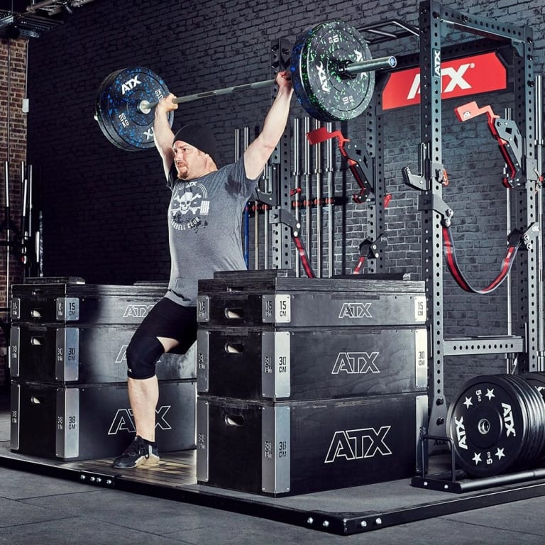 Get the ATX® Jerk Block Set - Black while stocks last! This high-quality complete set impresses with uncompromising stability, excellent workmanship and a powerful, dynamic design - ideal for your professional weightlifting or functional training.