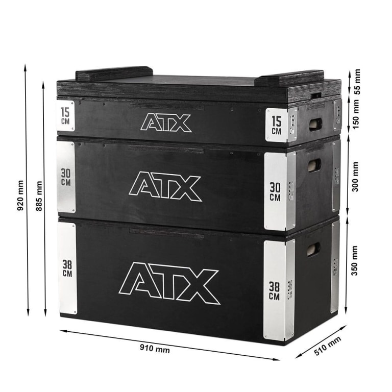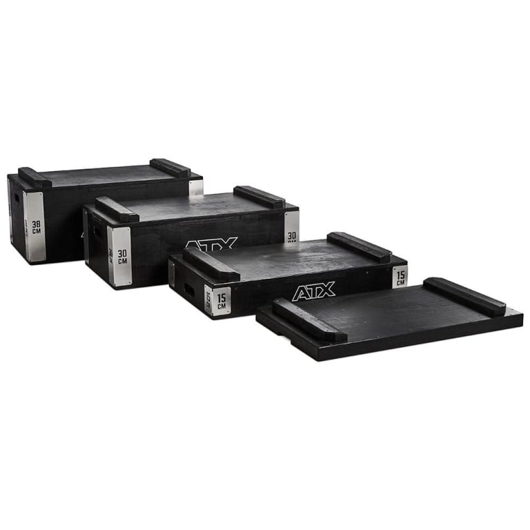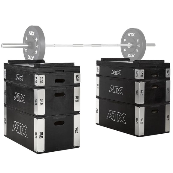 Made from extremely hard-wearing, black-coated multiplex wood panels with a natural grain, the ATX® Jerk Block Set in black provides a strong, stable training base for demanding lifts. Reinforced metal corners with precisely lasered height markings not only provide additional stability, but also a cool look. The precision-fit design allows for easy, secure stacking - without wobbling, tipping or slipping, even under the heaviest loads of up to 500 kg.