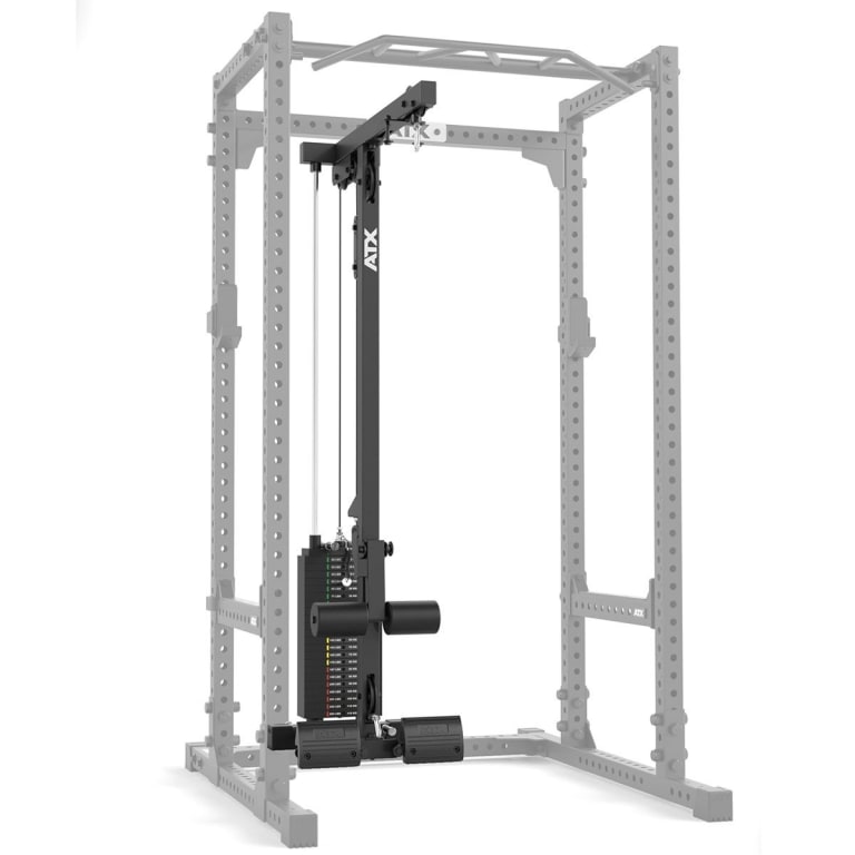 The ATX® lat pulldown option - insertable weights - for PRX-640 / PRX-660 adds a fully-fledged lat pulldown and rowing station to your power rack. With an integrated 115 kg set of weights, this add-on station offers a professional solution for efficient back training and a wide range of pulling exercises. Developed for the highest loads, it impresses with its robust construction, precise running characteristics and well thought-out features - ideal for ambitious home studios and professional training environments.