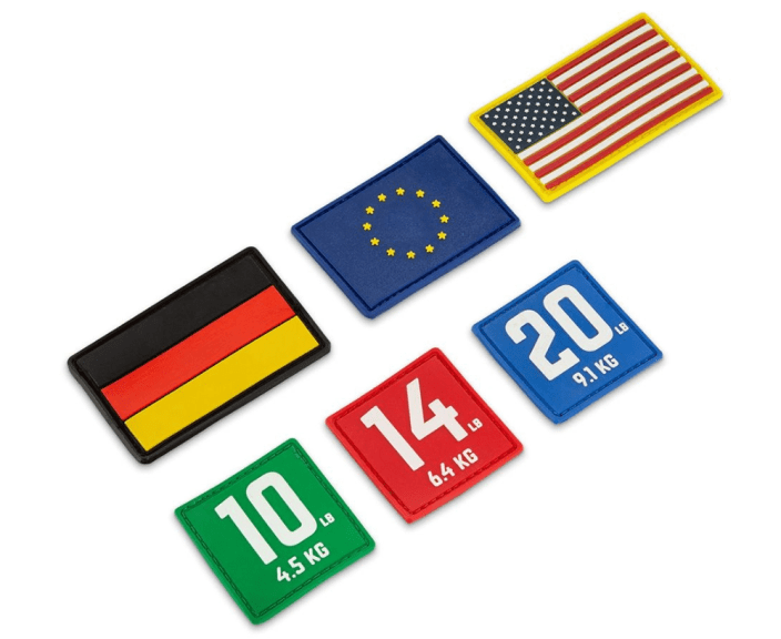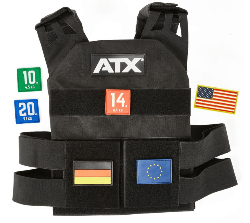 One ATX® Tactical Weight Vest, one six-piece set of patches (three flags, three weights)