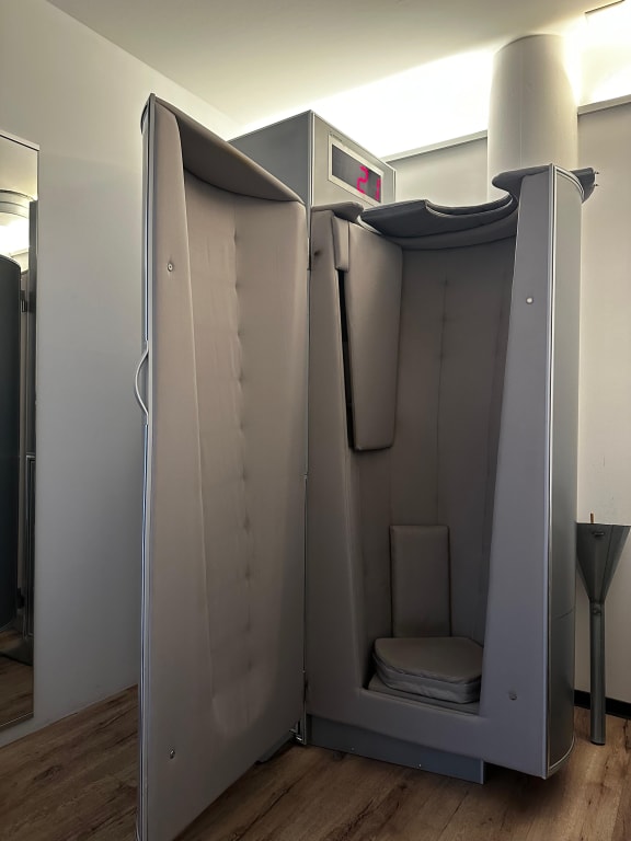 Cryosauna, whole-body cryotherapy / Temperature: down to -170 °C / Includes 4 nitrogen tanks (40 liters each) / Easy operation via touch panel / Ideal for gyms, physiotherapy practices, rehab centers or wellness facilities / Space-saving design, robust and reliable / Delivery or pickup upon arrangement