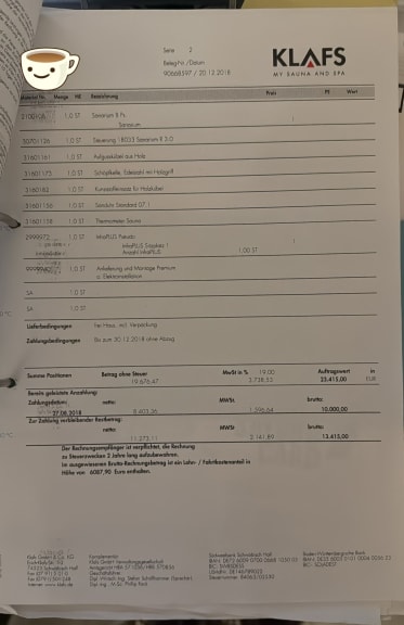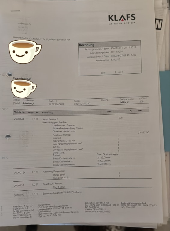 For sale is an almost new KLAFS Premium E sauna, installed at the end of 2018, hardly used, well maintained and fully functional.