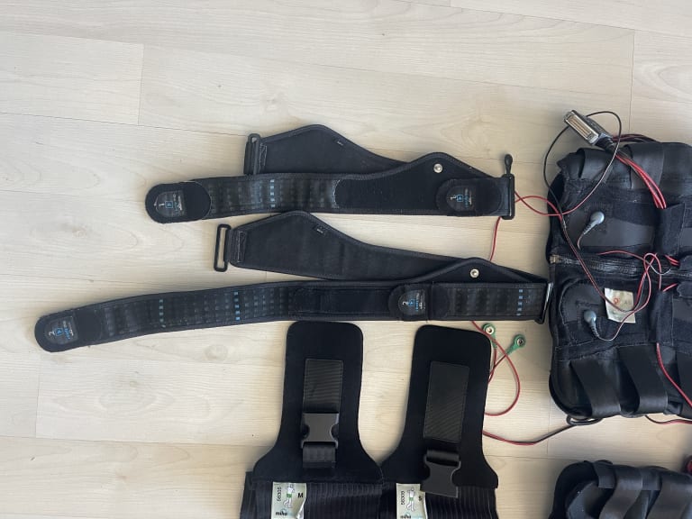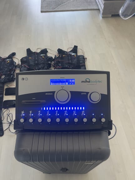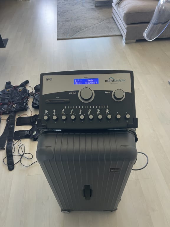 Miha Bodytec 1 for sale in perfect condition with its original Miha Bodytec case from the Rimowa brand, three vests sizes XS men's, XS women's and S women's, arm and leg straps in sizes 1 and 2, and buttock belts in sizes S and M.