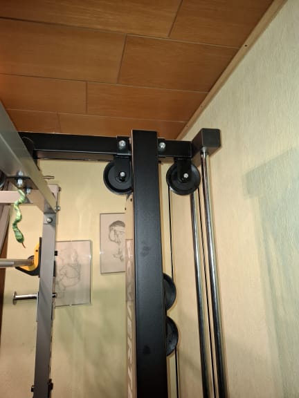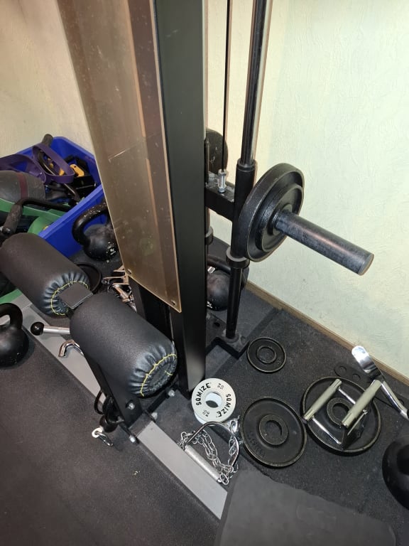 Condition: The equipment was used regularly in the home gym. It shows the usual, purely visual signs of use (e.g. paint abrasion on the barbell mounts and J-hooks), which are inevitable with serious training. Technically, everything is in perfect condition, the upholstery is well maintained and all functions (lat pull-down, adjustments) work perfectly.