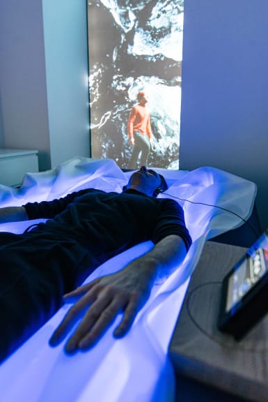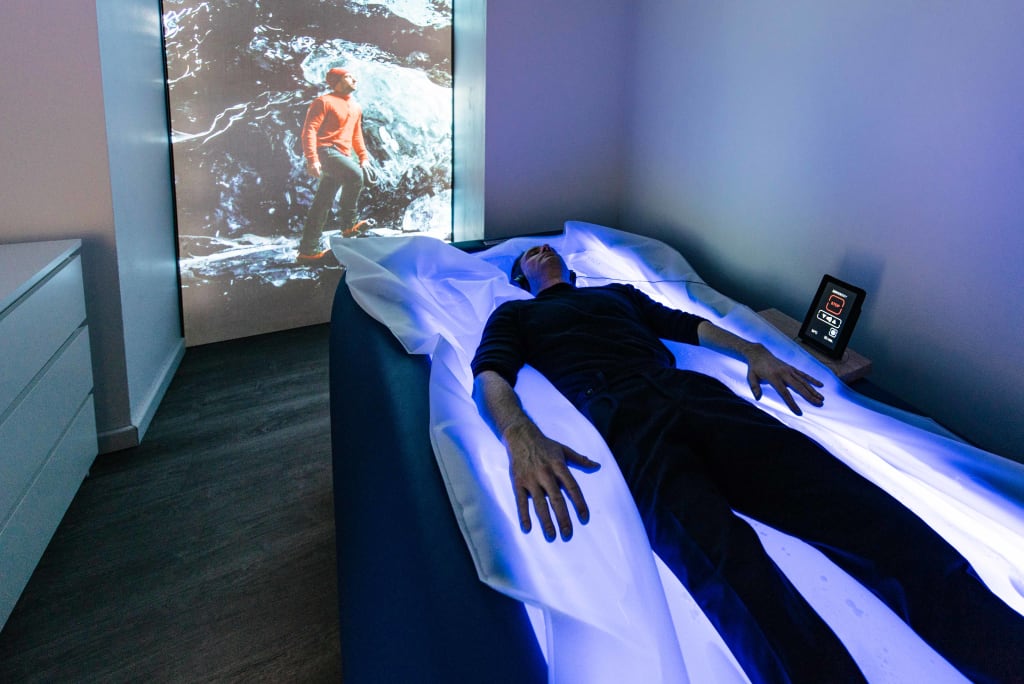 The feeling of weightlessness is one of the most relaxing experiences imaginable. Combined with warm water, you'll feel all stress melt away. You float on 400 liters of warm water without getting wet. The water temperature is a comfortable 35-36 degrees Celsius. This relaxing experience relieves the central nervous system of external stimuli, while activating various brain regions and stimulating regenerative physical responses. The treatment can help reduce stress, alleviate insomnia and chronic pain, improve concentration and focus, and sustainably enhance mental and physical performance.