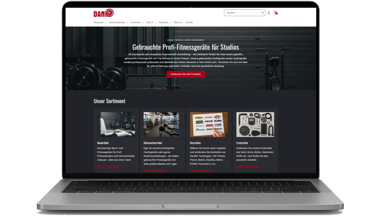 Germany's largest retailer of new and used fitness equipment, Dank Sportgeräte GmbH, has completely revamped its online store and now presents itself in a modern, fresh design. The aim of the redesign was to offer customers an even more user-friendly shopping experience and to present the growing variety of products in the best possible way.